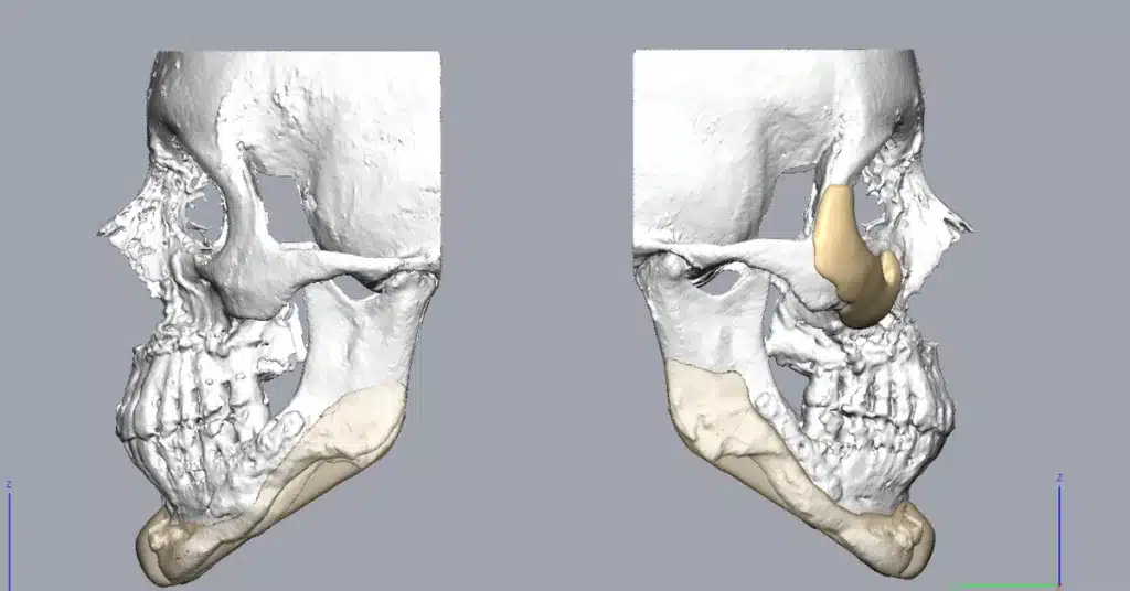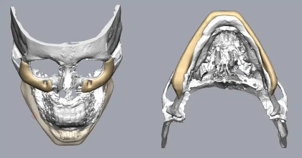 The primary objective was twofold: to correct a pronounced residual asymmetry and to build a robust, masculine jawline and midface that projected strength and character. Dr. Martinez challenged us with a clear goal: to design implants that would provide his patient with a refined, “stud-like” profile—a look that was both transformative and completely natural.