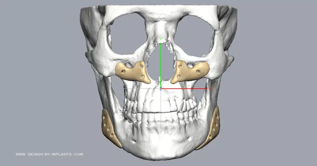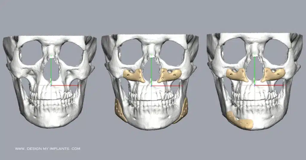 - Use bilateral custom jaw implants to create skeletal symmetry