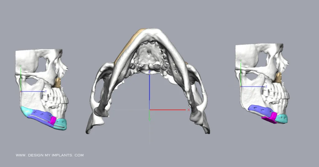 - A lower mandibular osteotomy, performed with custom-designed surgical guides to ensure accuracy